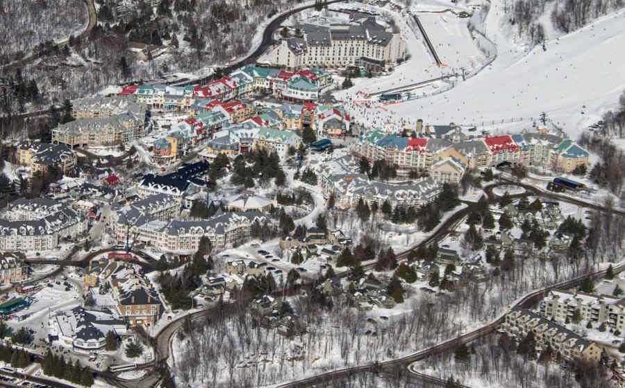 ロレンシャン高原の奥、トランブラン山の麓。秋の紅葉で有名ですが、冬はスキーでカナダ東部屈指のリゾート。歩行者専用道路やお洒落なショッピング街のビレッジの低い地点と高い地点はカブリオレ(Cabriolet:ゴンドラ)で結ばれ、終点から山頂へ行くゴンドラに乗車ができます